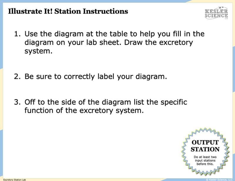 Your visual students will love this station. Students are to create and label a diagram that shows the function of the excretory system.